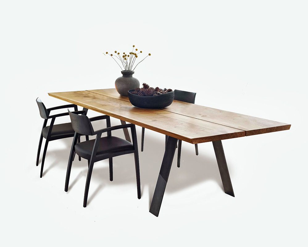 aus 40mm starkem Massivholz. Die Tischbeine