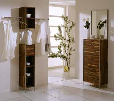 Nußbaum, mit Edelstahl kombiniert. Kombinations-Vorschlag