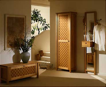 Geflecht natur, Garderobenelement mit Schubkasten.