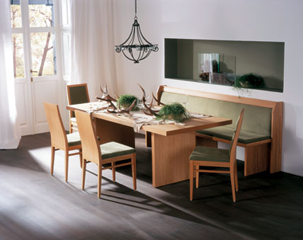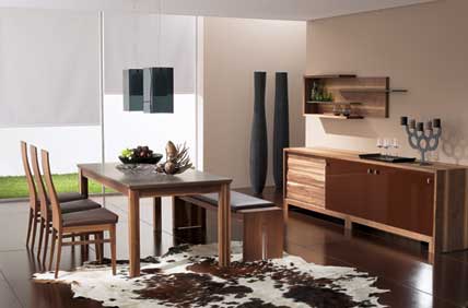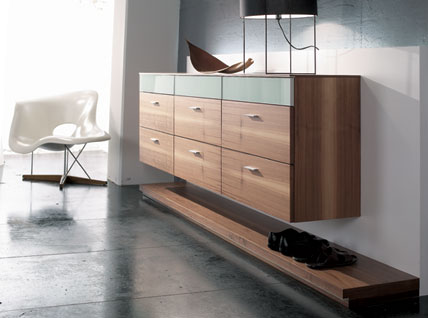 Moderne Geradlinigkeit als Kombination von natürlichen Hölzern und schlichtem Design macht die magische Attraktivität des neuen Programmes aus. Zarte Kontraste und verspielte Details verzaubern in neuartigen Materialkombinationen von Holz, Metall, Acryl und färbigem Glas.